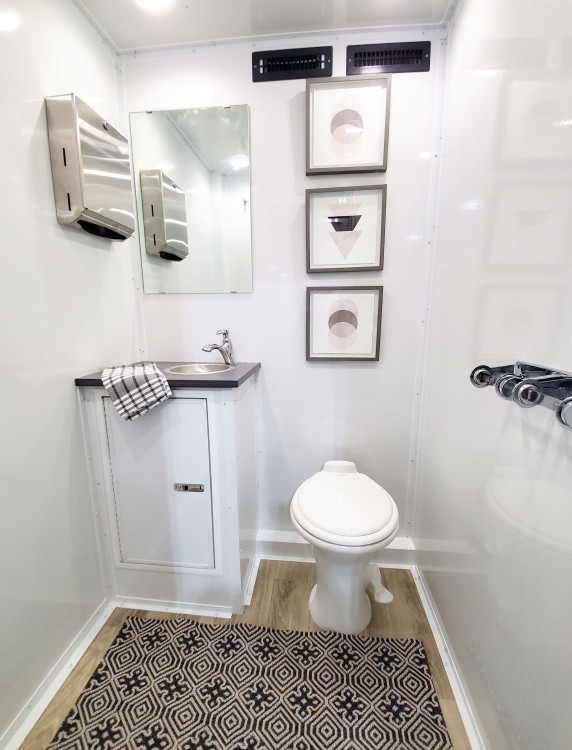 | Consumables Included Toilet paper, hand soap, air freshener, and paper towels — stocked and ready for your event. |