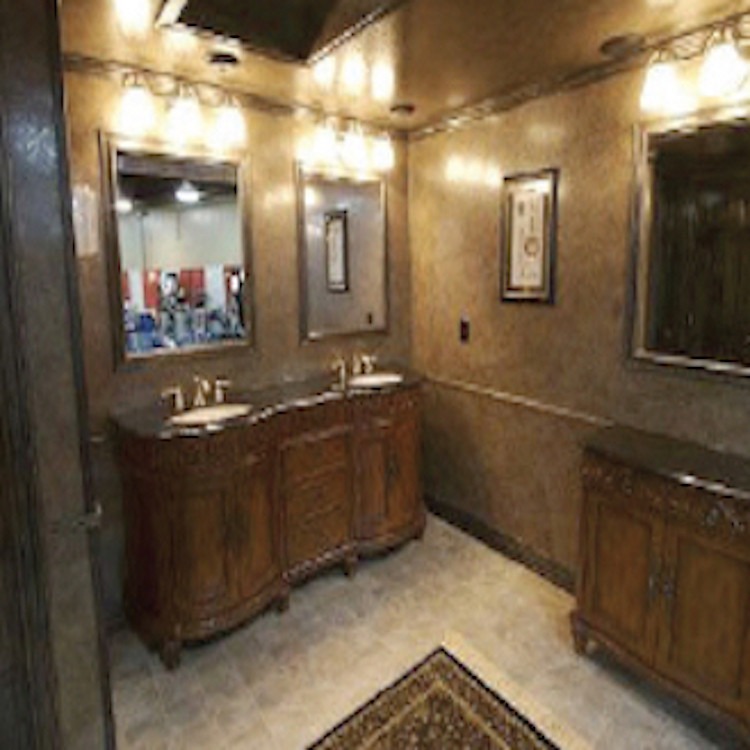 Our compact luxury trailer for weddings, private parties, and mid-size events. Three fully enclosed, lockable restrooms plus one urinal with a privacy divider. Premium finishes, dual A/C, 4K TVs, and Bluetooth stereo. Over 4,000 uses before servicing needed.
